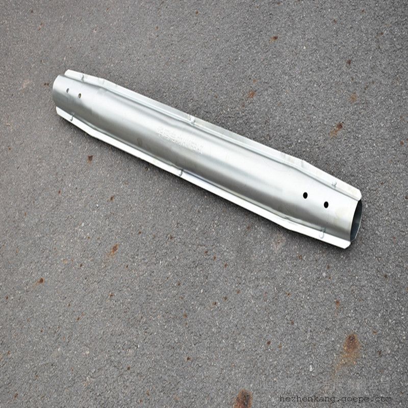 本实用新型涉及一种高压电缆中间接头处的防爆装置,特别是一种电缆中间接头防爆盒。本实用新型电缆中间接头防爆盒为不能燃烧的两个双层半圆柱体扣在一起的圆柱体,在两层壳体的夹层内填充阻燃材料组成,两个双层半圆柱体将电缆中间接头包在中间,安装和维修十分方便,既起到防碰撞防磨损的作用,而且一但出现电缆中间接头短路或爆炸,内壳能迅速开裂,内部填充的阻燃材料及时包覆整个电缆接头,从而达到熄灭火焰的目的。